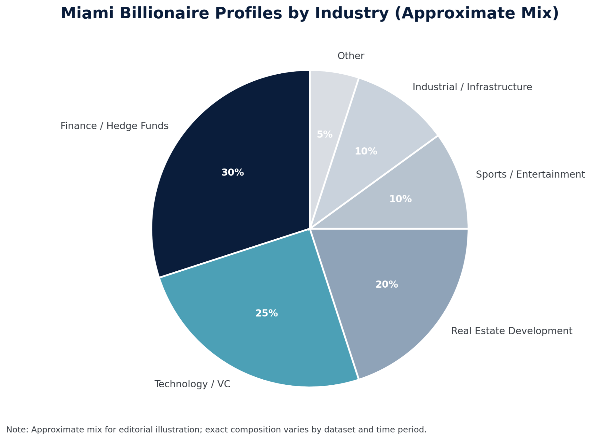 Miami’s billionaire base is diverse, but it skews heavily toward operating and institutional wealth, not just celebrity money.